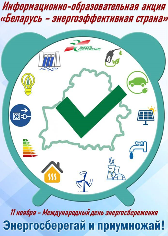 С 10 по 20 ноября 2025 года Департамент по энергоэффективности проводит республиканскую информационно-образовательную акцию «Беларусь – энергоэффективная страна». Она приурочена к Международному дню энергосбережения (11 ноября).