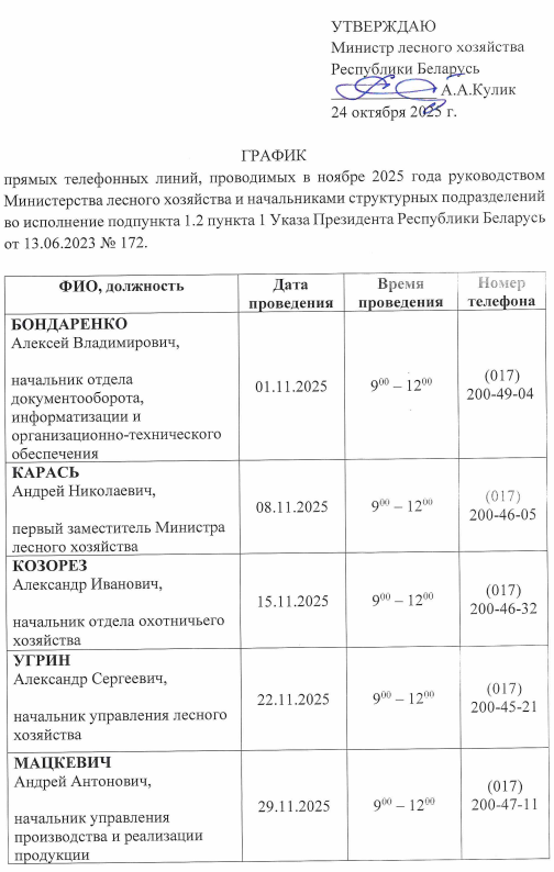 Руководство Министерства лесного хозяйства Республики Беларусь