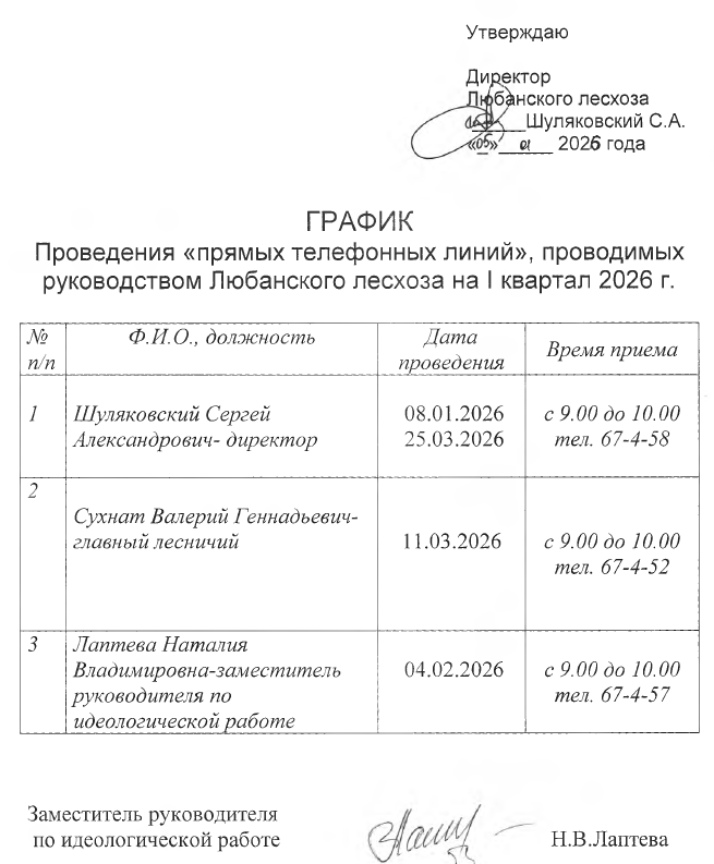 директора - прием осуществляет главный лесничий Сухнат Валерий Геннадьевич