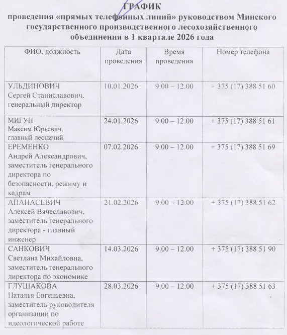 ТЕЛЕФОН ГОРЯЧЕЙ ЛИНИИ МИНИСТЕРСТВА ЛЕСНОГО ХОЗЯЙСТВА РЕСПУБЛИКИ БЕЛАРУСЬ 8-017-200-46-01